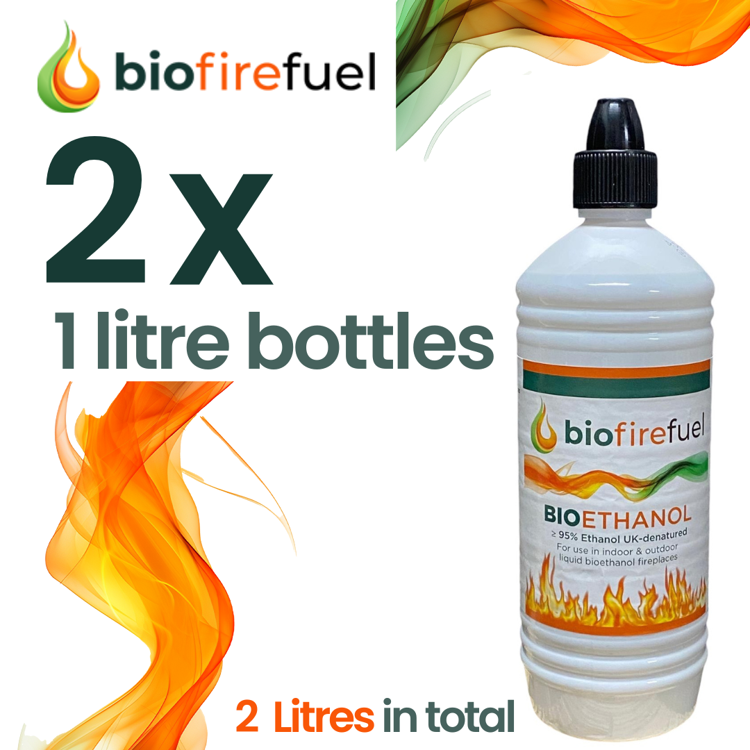 2 x Litre Bottles biofirefuel Bioethanol fuel is the sustainable, eco-friendly alternative to traditional fossil fuels – ideal for use in modern, ventless fireplaces. Our premium grade biofirefuel brand bioethanol has been specially formulated for safe, efficient burning in bio fireplaces, bio hearths, bio table top fireplaces and bio built-in hearths.